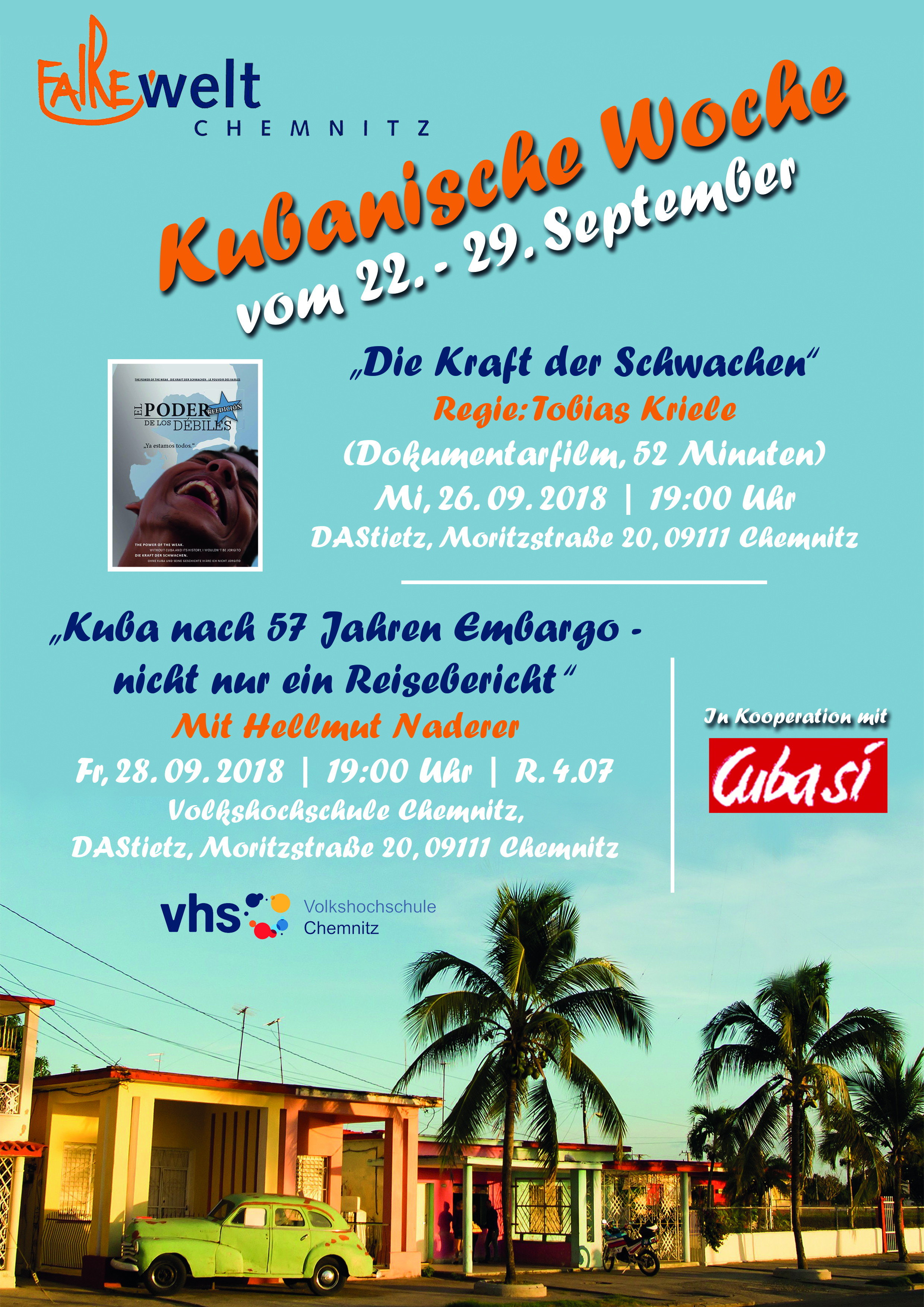 Im Rahmen der Kubanischen Woche vom 22. – 29. September und der Interkulturellen Woche vom 22.09. – 07.10. (Programm der Interkulturellen Woche 2018) wird im TIETZ der Film „Die Kraft der Schwachen“ gezeigt.
