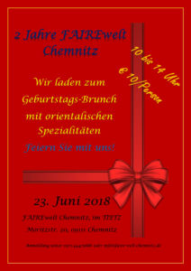 es ist mal wieder soweit. Am 23. Juni gibt es eine Neuauflage unseres Brunchs. Euch erwarten orientalische Spezialitäten, die wir selbst zubereiten. Unterstützt werden wir mit Speisen aus dem syrischen Restaurant Malula.