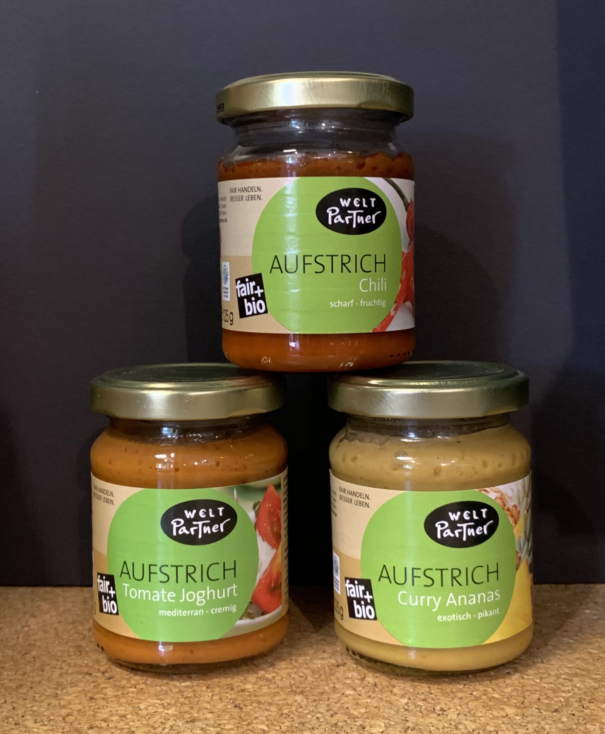 Lecker und das perfekte Topping für jedes Brot ist der Brotaufstrich von Weltpartner. Der Handelspartner „Canaan Fair Trade“ fördert benachteiligte palästinische Gemeinschaften. Ungefähr 2.000 Kleinbauerfamilien bekommen durch die Produktion einen fairen Lohn und können somit ihren Lebensstandard und ihre Kultur aufrechterhalten. Zudem werden regenerative Ökosysteme gepflegt und auf die Umwelt geachtet. Die Brotaufstriche stammen aus kontrolliertem ökologischem Anbau und sind in drei leckeren Sorten vorhanden.