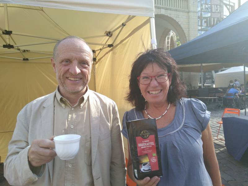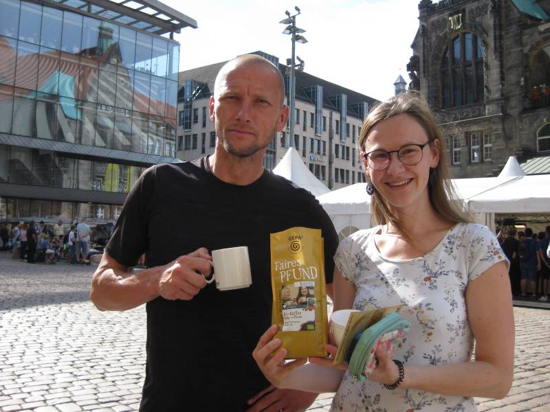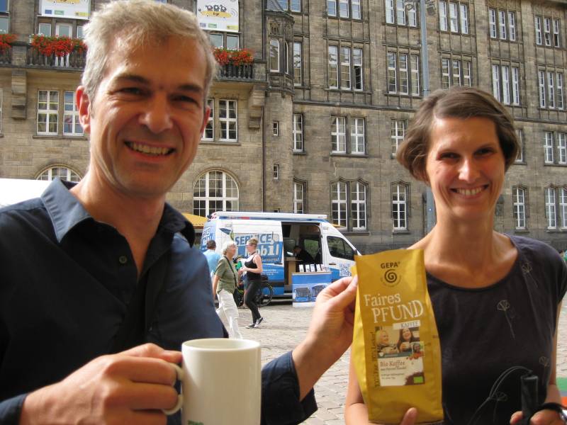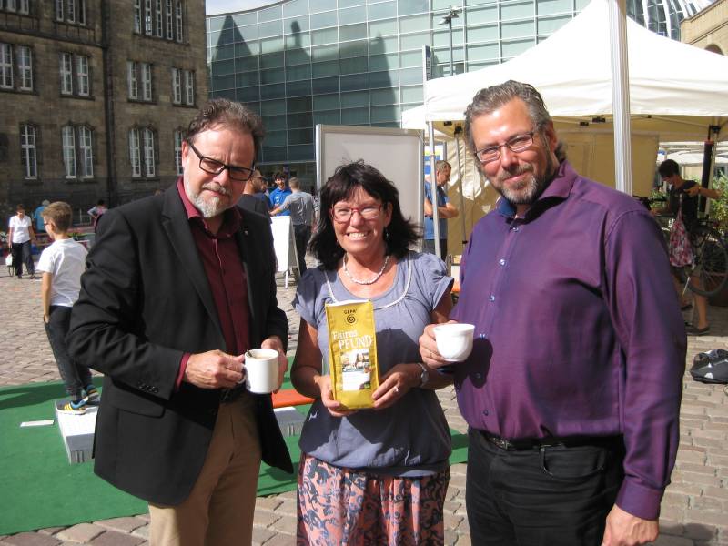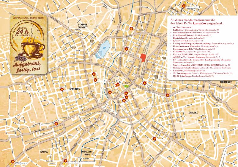 Vom 21. September 10 Uhr bis 22. September 10 Uhr waren 24 Stunden Zeit, um 5000 Tassen Kaffee zu trinken und damit eine Wette zu gewinnen. Die Fairtrade Town Steuerungsgruppe wettete mit der Oberbürgermeisterin, die anbot, auf dem Weihnachtsmarkt am Stand der Chemnitzer UNICEF-Gruppe für einige Zeit mit zu verkaufen und zum fairen Handel zu informieren, sollten die Chemnitzer und Chemnitzerinnen die 5000 knacken. Die Steuerungsgruppe bot im Gegenzug an, im kommenden Jahr ein faires Frühstück für alle zu organisieren, sollten die 5000 nicht geschafft werden.