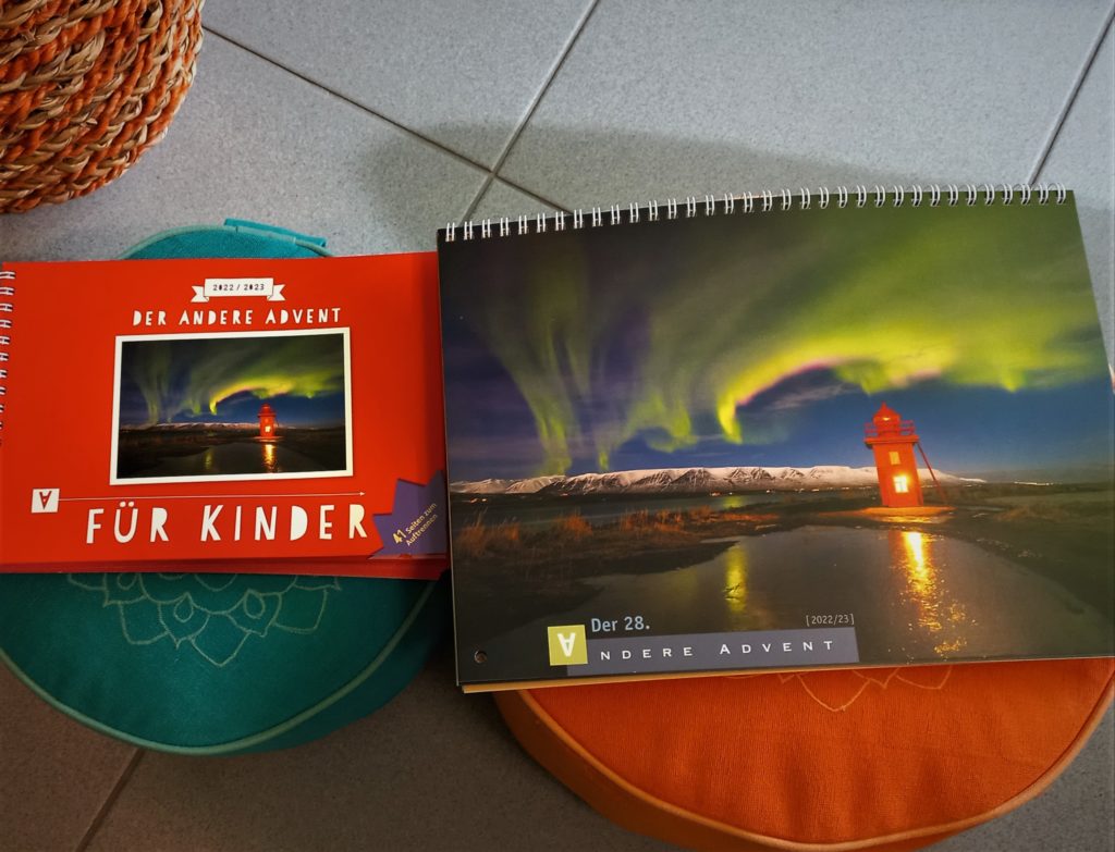 Der andere Advent“ begleitet uns und unsere Kinder in der Zeit vom 28. November bis zum 6. Januar. Diesen besonderen Adventskalender könnt ihr bei uns erwerben.