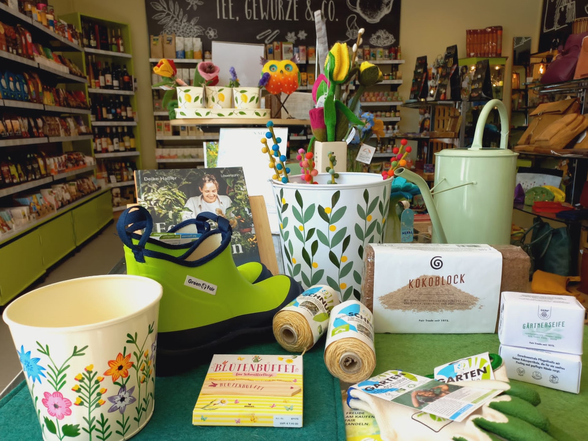 …denn bei uns im Weltladen begrüßt euch ein bunter Strauß an Gartenwerkzeugen, der jedem Hobbygärtner und jeder Balkonenthusiastin etwas zu bieten hat: