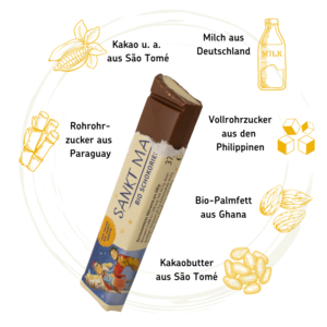 Am 11. November ist Sankt Martin Tag, wobei die Geschichte von Sankt Martin als Zeichen der Nächstenliebe uns wieder in den Sinn kommt. Bei den Kindern ist diese Zeremonie stets beliebt. Um die Bedeutung dieses Tages zu zeigen, gibt es bei uns den fair-gehandelten und leckeren Schokoriegel zu Sankt Martin,