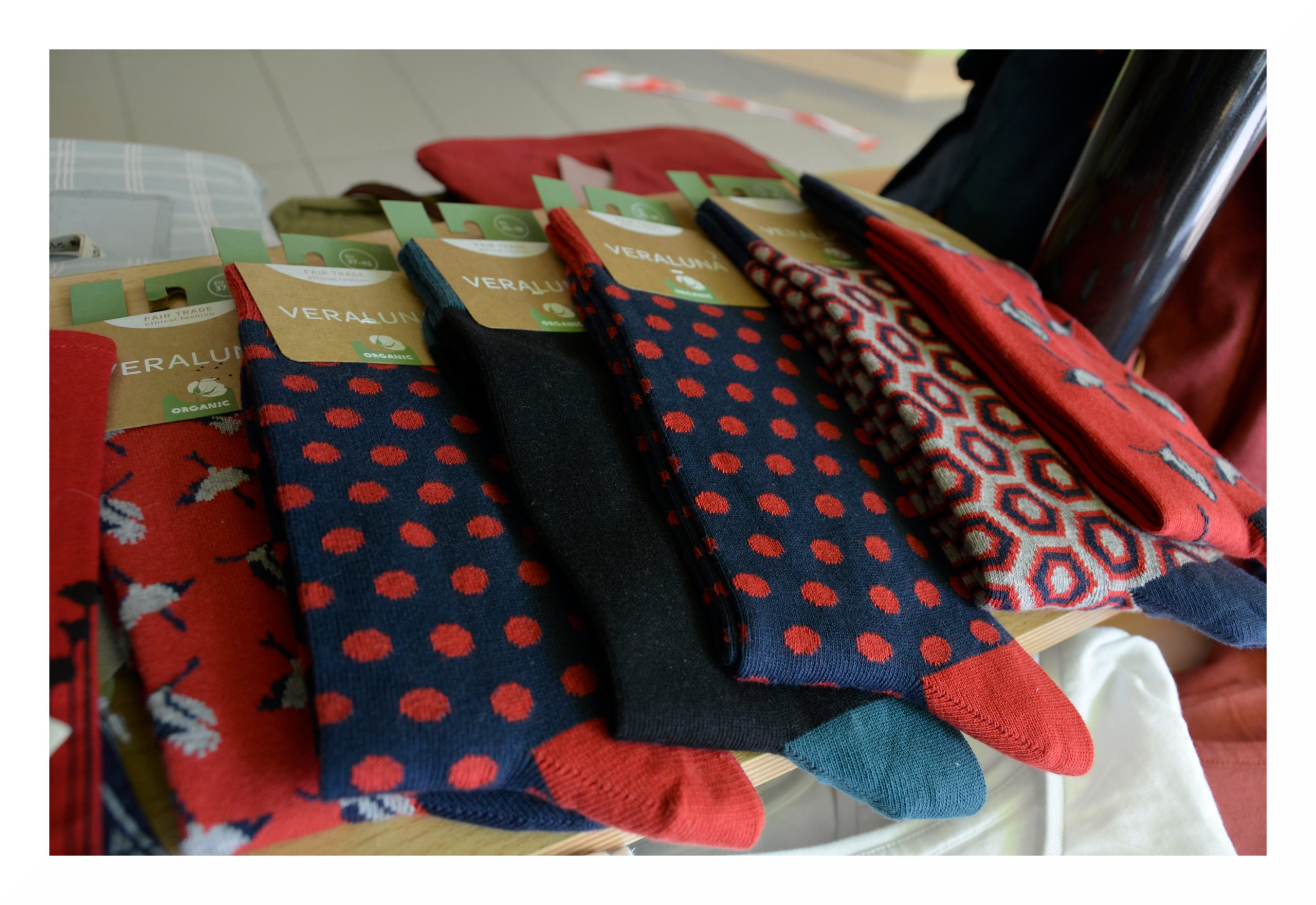 Die gemusterten, bunten Bio-Baumwoll-Socken werden von 19 Mitarbeiter*innen in der Türkei von Bulus hergestellt und sind GOTS-zertifiziert. Bei dem Anbau der Bio-Baumwolle wird auf Chemie und den Einsatz von gentechnisch manipulierten Pflanzen verzichtet. Bei der Herstellung wird die Gesundheit der Arbeiter*innen durch Schutzkleidung gewährleistet, außerdem sind die Frauen in der Werkstatt komplett gleichgestellt und die Produktion wird von einer Frau koordiniert.