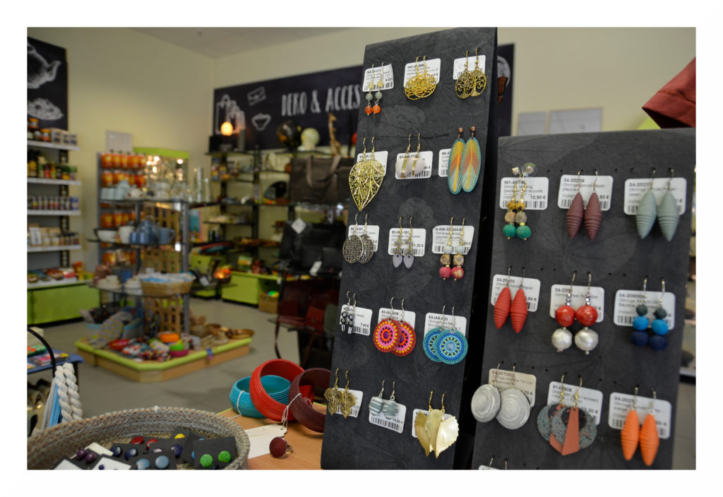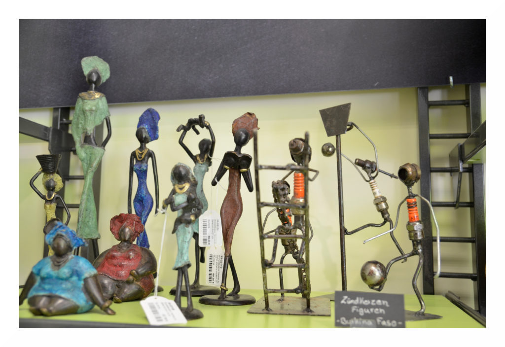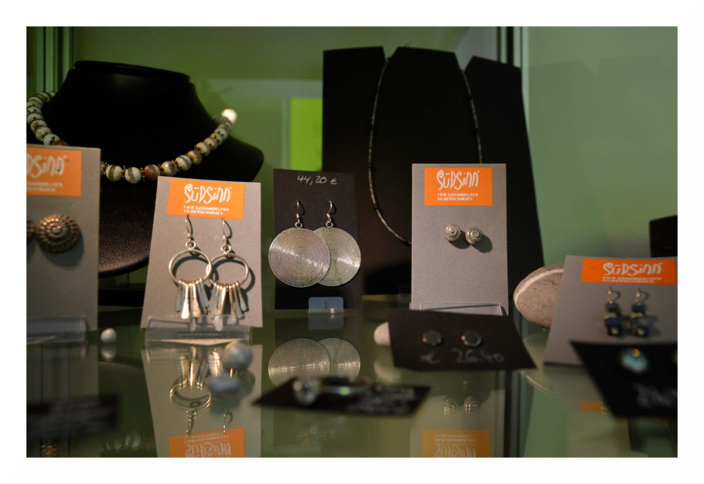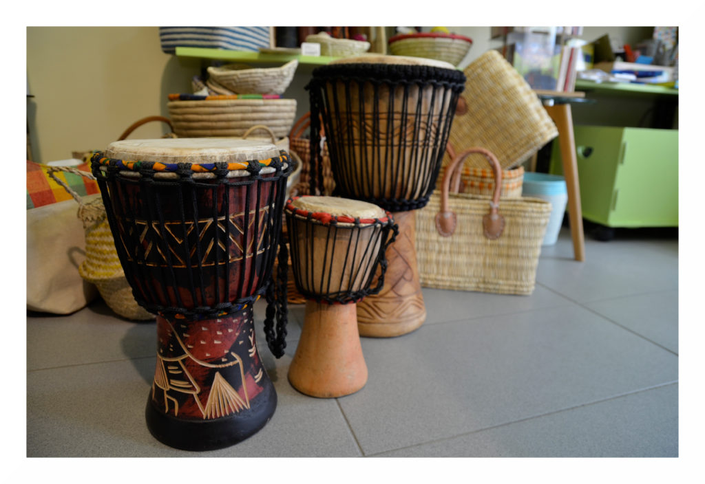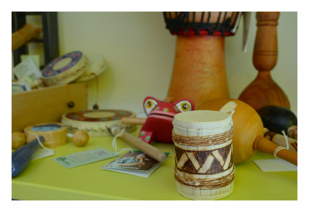 Auf den Kontinenten der Welt sind sehr verschiedene Musiktraditionen verbreitet, weswegen es im Weltladen auch einen großen Umfang an unterschiedlichen Musikinstrumenten gibt. Dies sind beispielsweise Djemben aus Ghana, Nasenflöten und Maultrommeln aus Vietnam, Klangtiere aus Indonesien, Ocarinas, Bambus- und Panflöten sowie Handtrommeln aus Peru, Rasseln aus Kolumbien oder Daumenklaviere aus Tansania und vieles mehr. Gern können die Instrumente direkt vor Ort ausprobiert werden.