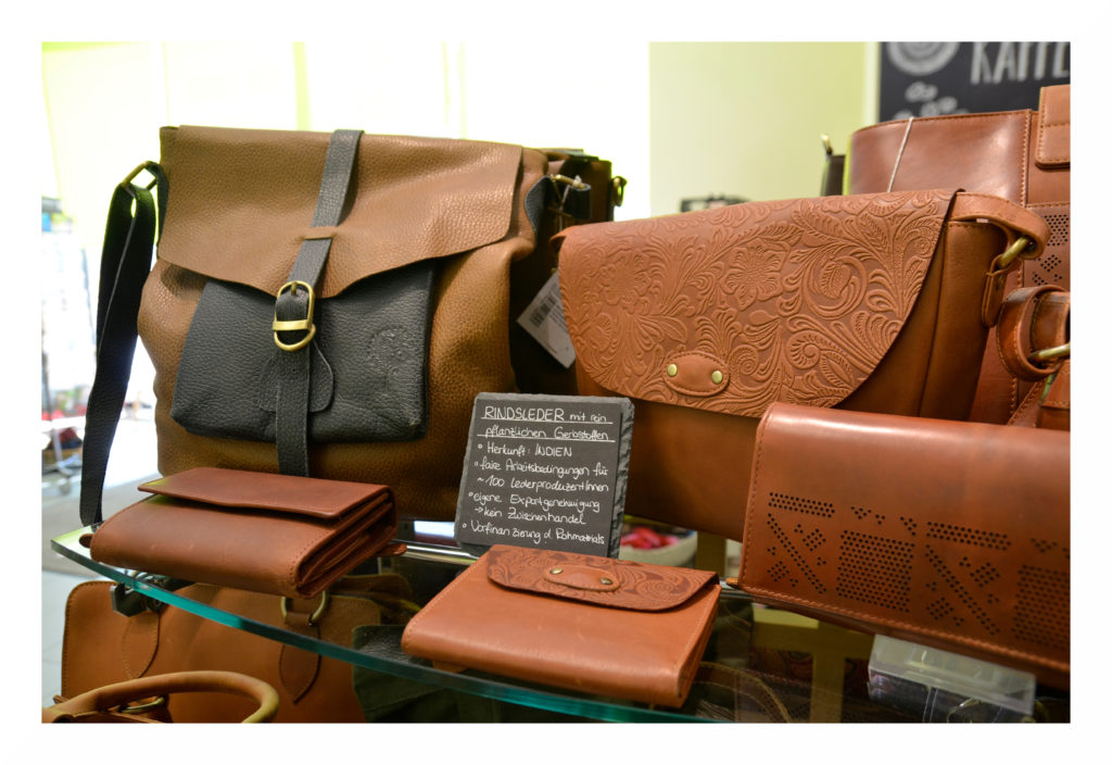 Eine besondere Produktreihe stellen Taschen aus Indien dar, deren Rindsleder mit rein pflanzlichen Gerbstoffen gegerbt wurde.