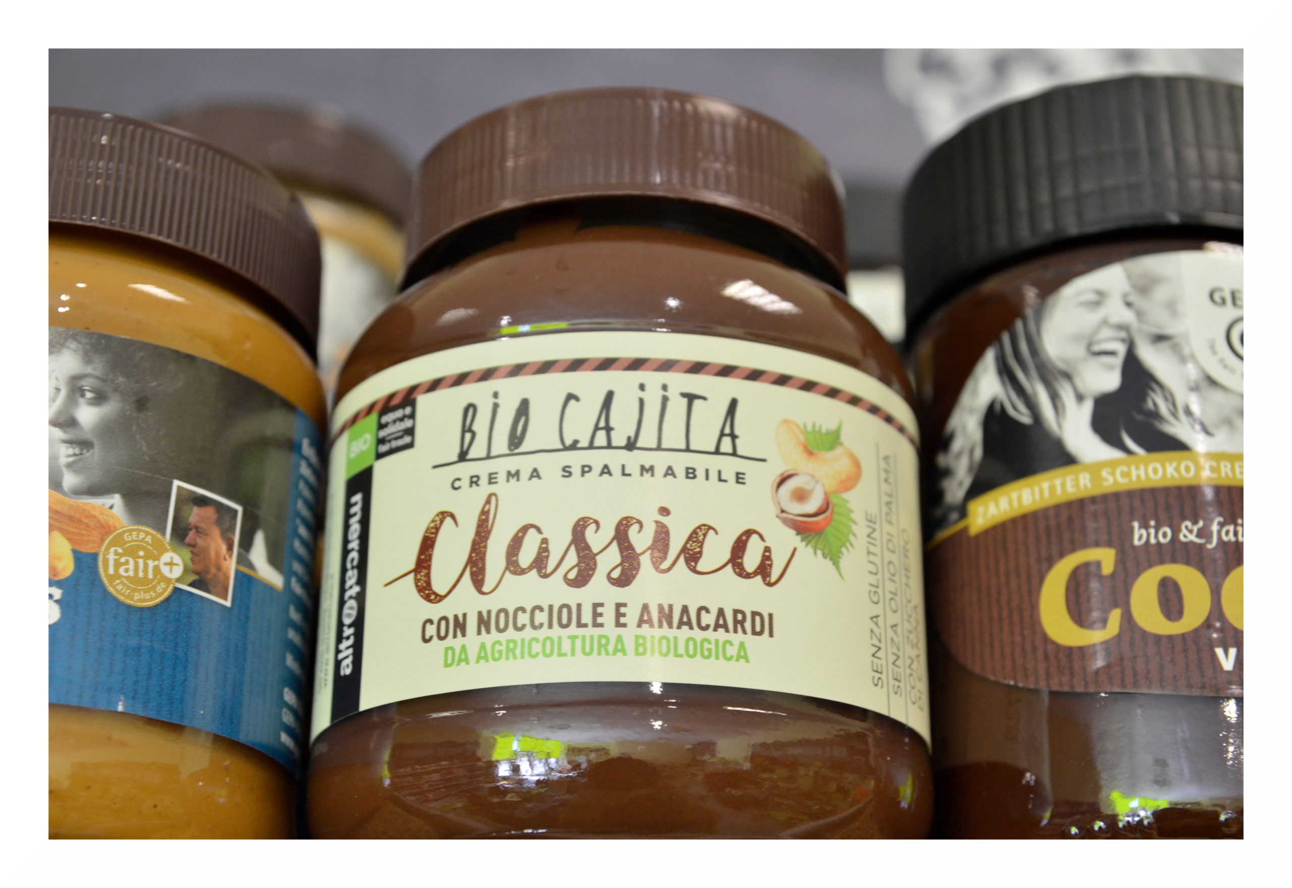 Der Bio Cajita Schokoaufstrich von Altromercato kommt gänzlich ohne Palmöl aus. Dieses steht nicht nur im Verdacht, gesundheitsschädigend zu sein, sondern zerstört durch den großflächigen Anbau die Lebensräume von Mensch und Tier und setzt dabei Tausende Tonnen CO2 frei. Weitere Infos zu Palmöl und seinen Folgen hier.
