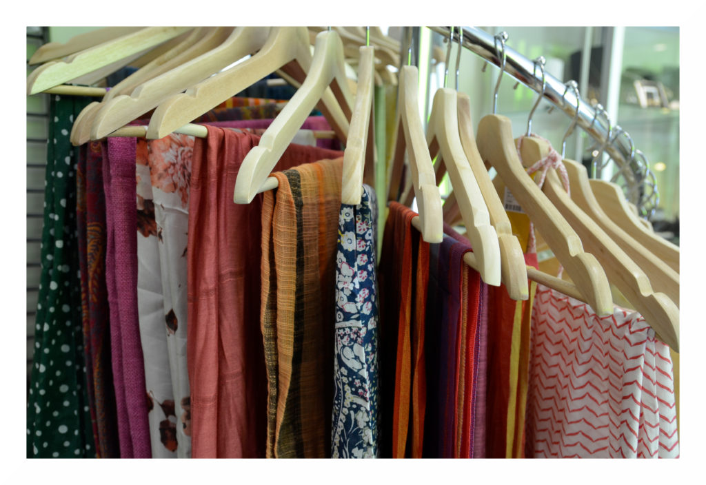 An unserem Tuchständer gibt es viele Tücher und Schals in verschiedenen Farben, Mustern, Größen und aus unterschiedlichen Materialien wie Seide, Viskose oder Baumwolle zu entdecken. Diese werden in Vietnam, Indien oder Nepal handgewebt.