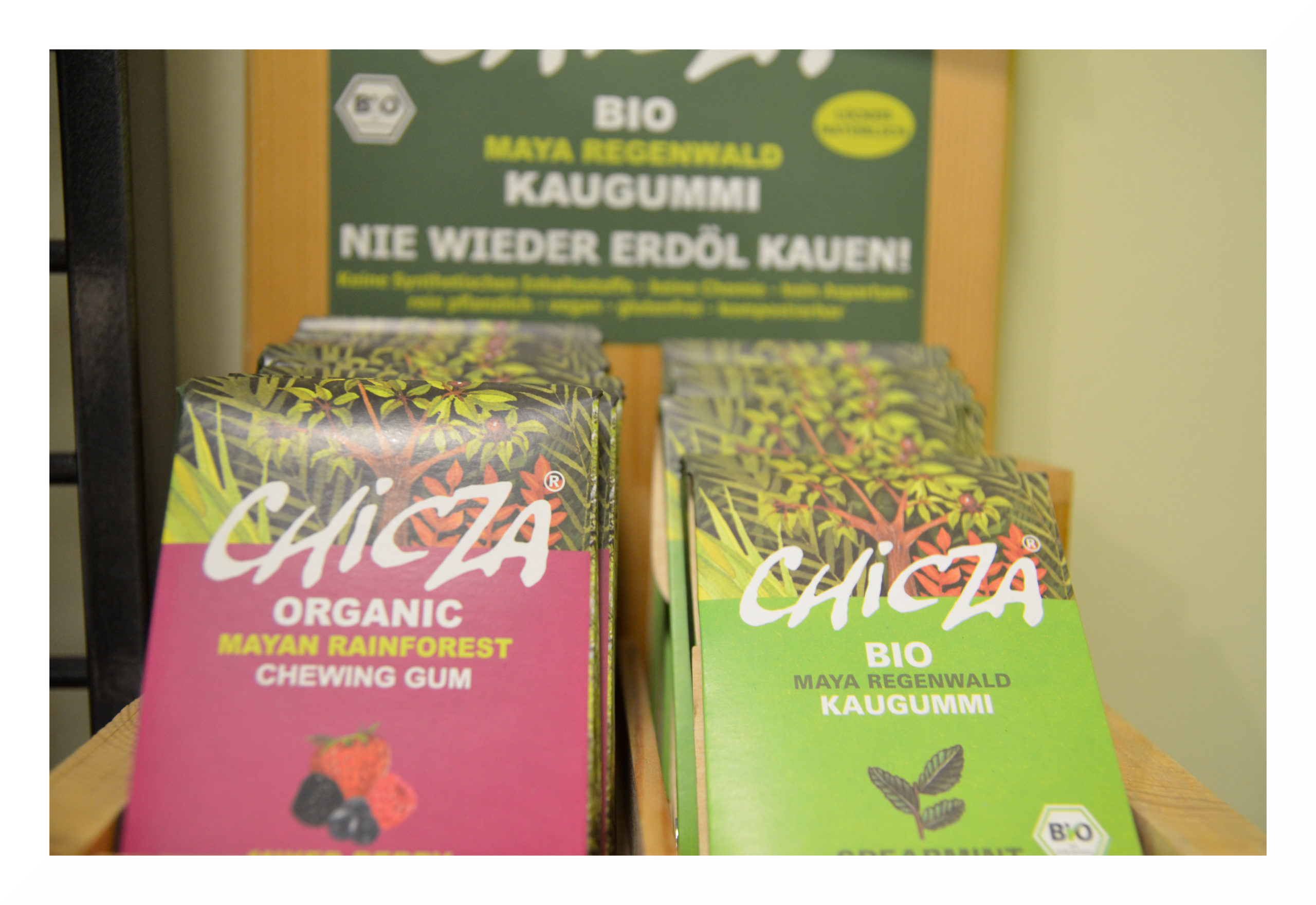 Unsere Original Chicza Bio-Kaugummis stammen aus dem Herzen des Maya Regenwaldes in Mexiko. Da sie keine chemischen Stoffe und erst recht kein Erdöl beinhalten, wie es bei konventionellen Kaugummis der Fall ist, sind sie zu 100% biologisch abbaubar und schützen den letzten Regenwald Mexikos durch nachhaltige Bewirtschaftung. Hergestellt werden sie aus Chicle, ein Naturlatex des Chicozapote Baumes. Gesüßt sind die umweltschonenden Kaugummis mit Agavendicksaft, Traubenzucker und Rohrzuckersaft. Die erntenden Kooperativen verarbeiten den Latex direkt weiter, wodurch die gesamte Wertschöpfung in Mexiko verbleibt.