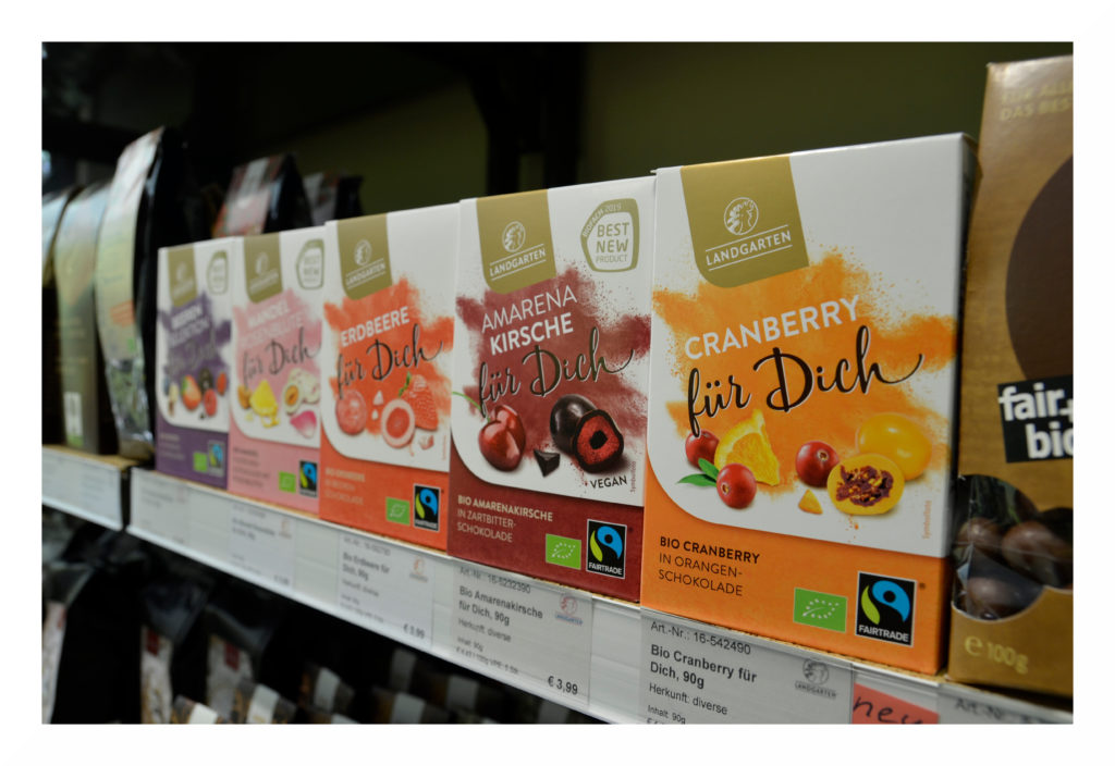Auch verschiedene schokolierte Nüsse oder die leckeren Schoko-Naschfrüchte von Landgarten in einem Schokoladenmantel finden sich neben den klassischen Tafeln und Riegeln. Sehr begehrt sind auch die handgemachten italienischen Trüffel oder die Trinkschokoladen von ZOTTER.