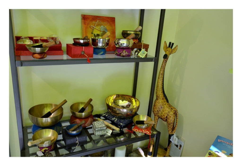 Die handgetriebenen Metallschalen, welche vor allem zur Meditation, Klangmassage oder als Musikinstrument verwendet werden, stammen überwiegend aus Nepal von Cottage Craft. Sie werden in einer kleinen Werkstatt in Kathmandu von 42 Handwerkern gefertigt, welche eine kostenlose Unterkunft und ein monatliches Einkommen erhalten, welches doppelt bis viermal so hoch wie das landesweite Durchschnittseinkommen ist.