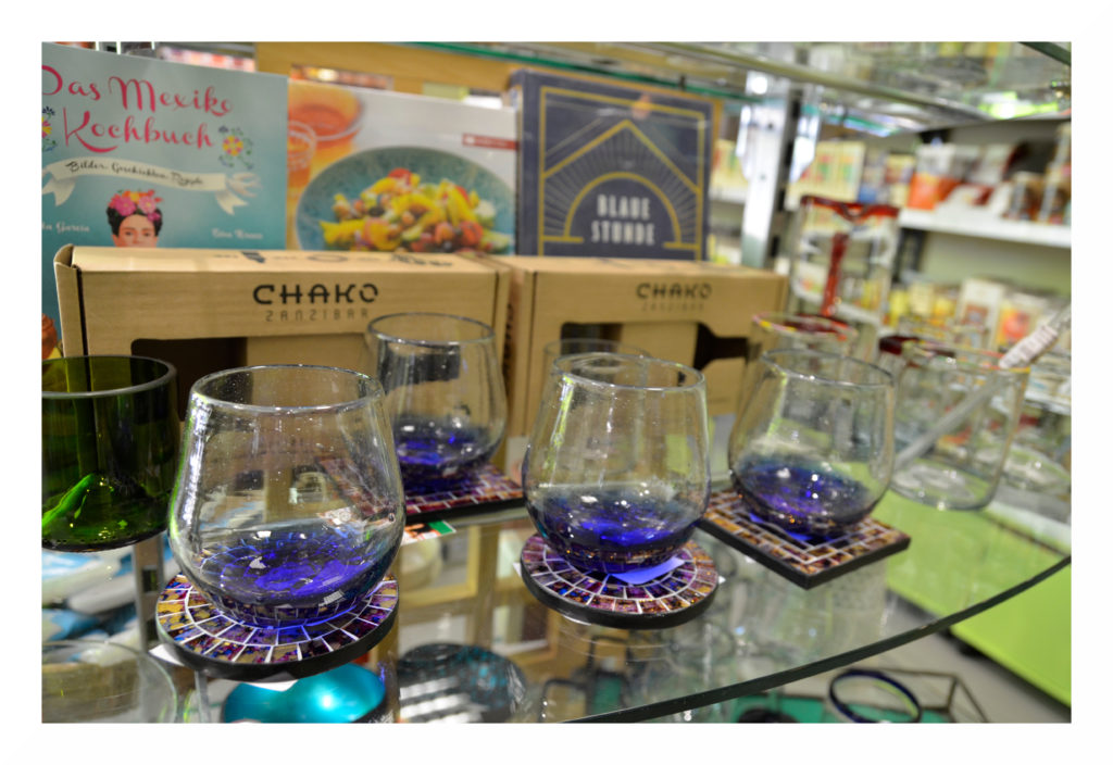 Aus Swaziland (Südafrika) bekommen wir das Ngwenya Glass; dazu zählen mundgeblasene Wein- und Champagnergläser, Schwenker sowie Glastiere und Flaschenstopper. Diese Produkte werden zu 100% aus gesammeltem Altglas hergestellt, sind also komplett recycelt. Sammler erhalten von der Glasmanufaktur Ngwenya Glass ein Nebeneinkommen, wenn sie ihr gesammeltes Altglas abgeben. Die Manufaktur ist Vorreiter beim Umweltschutz, denn neben gesammeltem Altglas verwenden sie recyceltes Altöl für die Brennöfen, Regenwasser aus einer Zisterne zum Kühlen und erzeugen mit Solarpanelen auf dem Dach ihren eigenen Strom. Mithilfe von Spendenaktionen setzen sie sich des Weiteren für den Schutz bedrohter Nashörner ein.