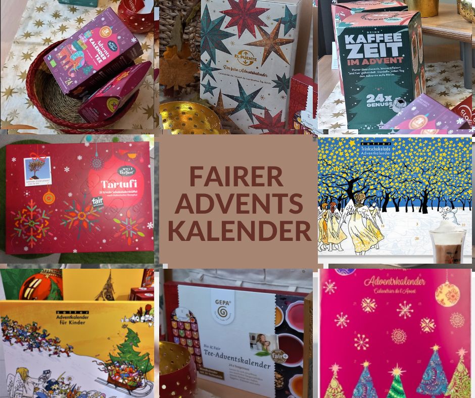 Unsere verschiedenen Adventskalender stehen für Sie bereit, damit Sie besinnliche Momente in dieser besonderen Zeit genießen können. Welche Überraschungen warten auf Sie? Verschiedene Tees, Schokoladen, Datteltrüffel und Kaffees sind schön verpackt, entweder als Ein-Themen-Kalender (zum Beispiel mit 24 verschiedenen Kaffeeproben) oder „klassisch“ sortiert als der allen Großen und Kleinen bekannte Kalender mit vierundzwanzig Türchen, die bunt durch unser Sortiment führen. Und ganz wichtig: alle diese Erzeugnisse stammen von Produzenten, die bereits lange mit unseren Lieferanten zusammenarbeiten, und sind selbstverständlich fair gehandelt! Wir haben genug im Laden, kommen Sie gerne vorbei.