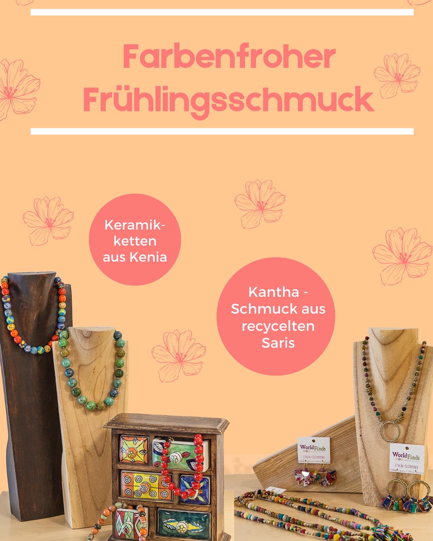 So bieten wir Kazuri – Schmuck von mekhada (Keramikketten), Kantha – Schmuck aus recycelten Saris und Papierscmuck von Sundara Paper Art an. Diese Accessoires sind in zahlreichen Modellen und Farben bei uns erhältlich.