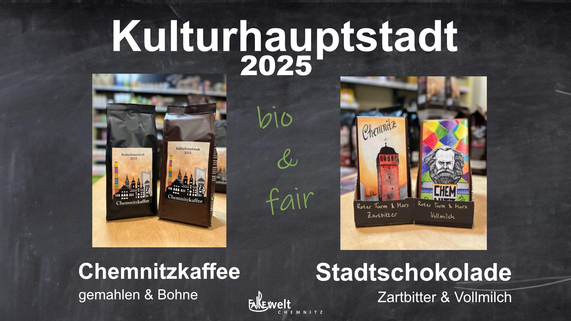 Es ist 2025. Chemnitz ist Kulturhauptstadt, doch nicht nur das. Chemnitz ist außerdem seit April 2024 zum zweiten Mal Fairtrade-Town. Passend dazu gibt es auch dieses Jahr wieder fairen Stadtkaffee und faire Stadtschokolade im Weltladen.