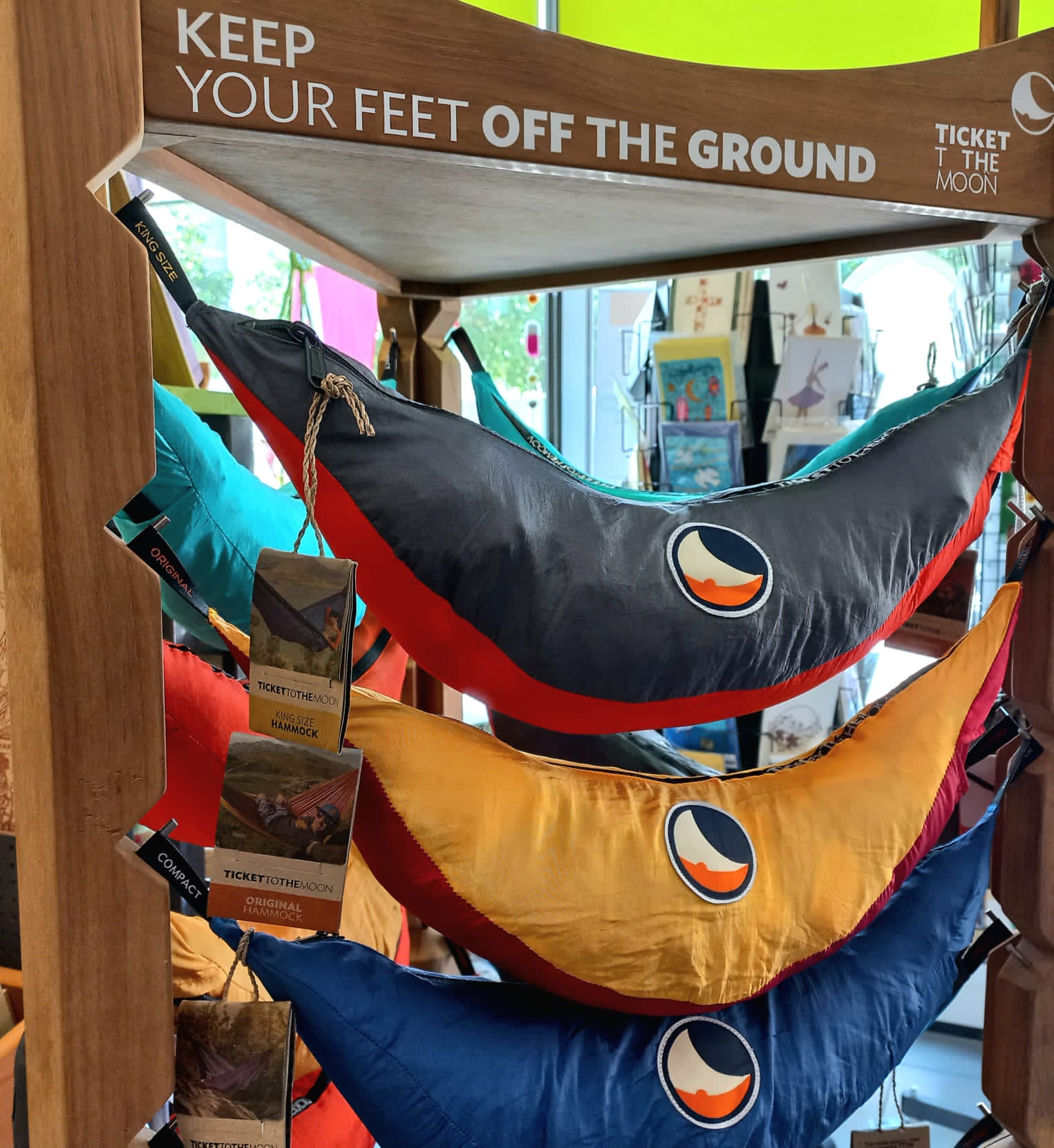 Um Abfall zu vermeiden und einen minimalen ökologischen Fußabdruck zu hinterlassen, bestehen die Produkte zu 100% aus Fallschirm-Nylon. Nichtsdestotrotz gibt es eine 10-jährige Herstellergarantie. Die langlebigen Taschen und Hängematten sind elastisch, hautfreundlich, atmungsaktiv und in zahlreichen Farbkombinationen erhältlich. Durch die umweltfreundliche Produktion wird auf einen bewussteren Lebensstil hingewiesen. Aber nicht nur Nachhaltigkeit, sondern auch Fair Trade und der Schutz lokaler Kulturen sind wichtige Grundsätze von Ticket to the Moon. Ein guter Zweck für Umwelt und unsere Mitmenschen.